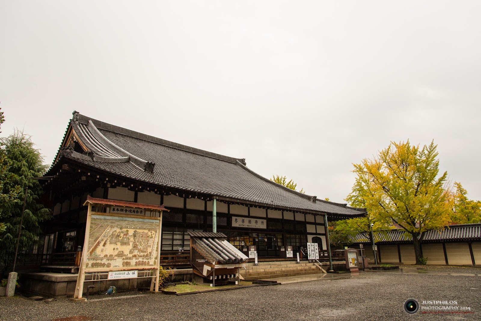 因為我們住的民宿附近便是京都市區知名的景點「東本願寺」,因此在前往車站順路的過程中,我們進入東本願寺參訪。