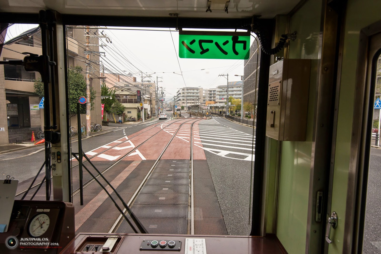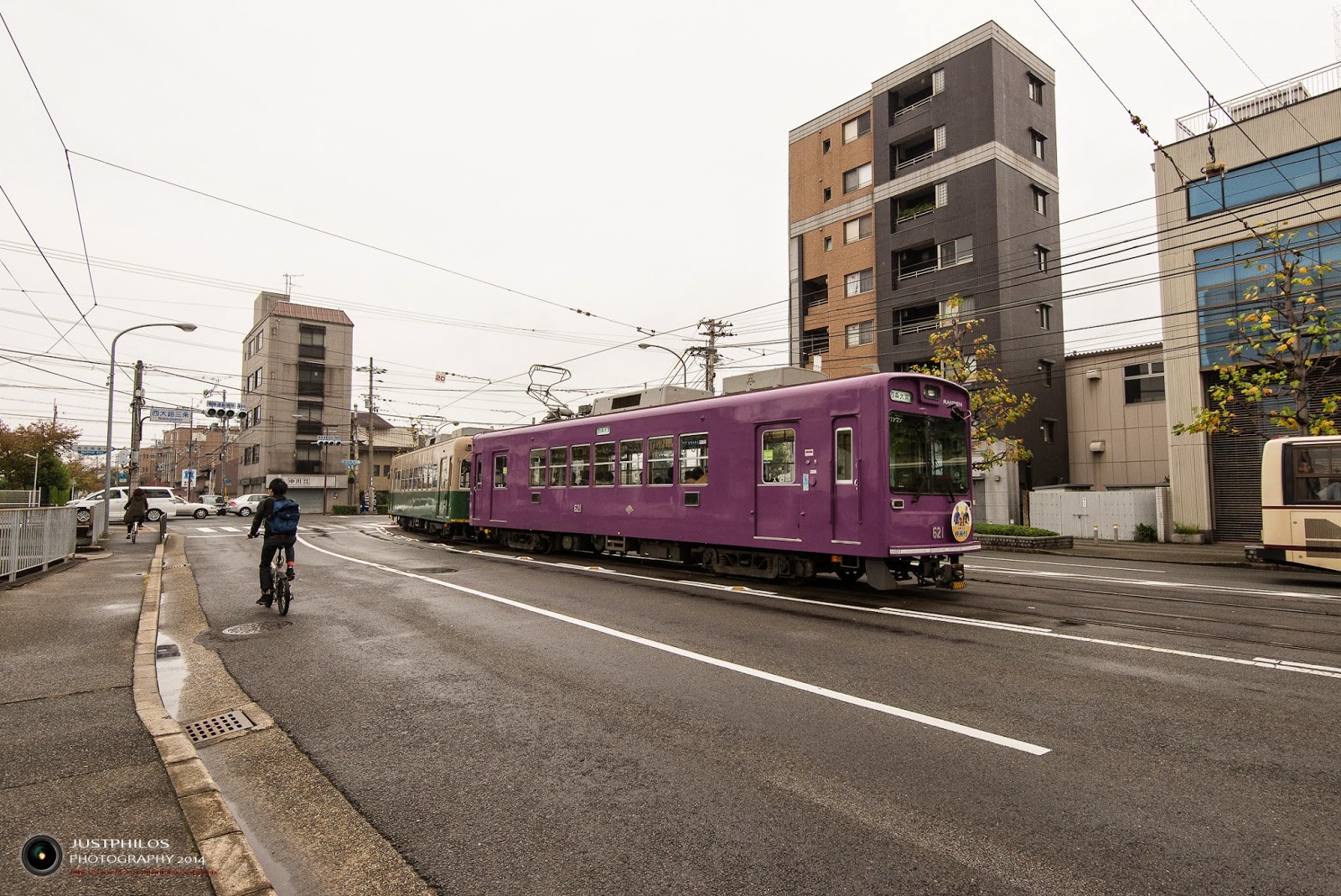 京福電鐵是京都唯二的路面電車,列車軌道是埋設在道路裡面,並與一般車道平行;在台灣並沒有看過類似的交通工具,第一次搭乘感覺還滿新鮮的。