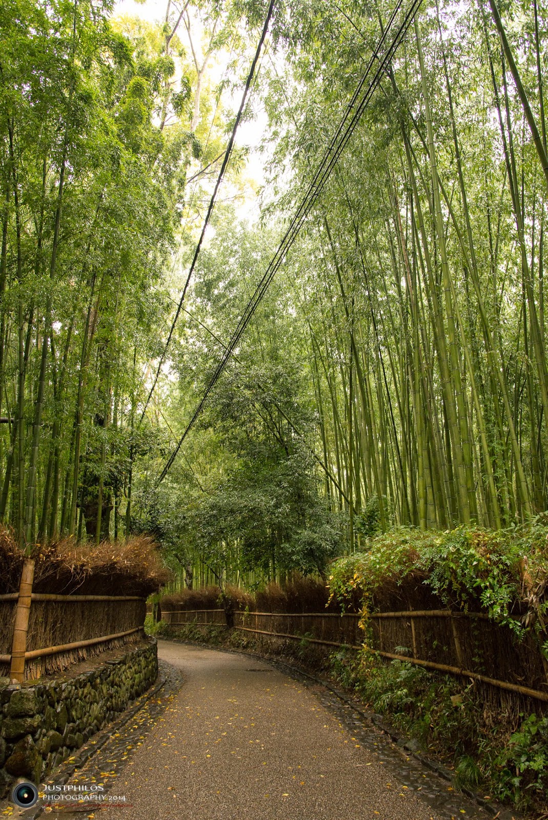 嵯峨野竹林是有著猶如電影「臥虎藏龍」場景內那片竹林般壯闊的竹林,在竹林內有種靜謐幽閉的感覺,只可惜天色不好,拍攝照片都有些昏暗。竹林全長並不長,大約20分鐘的腳程即可走完。