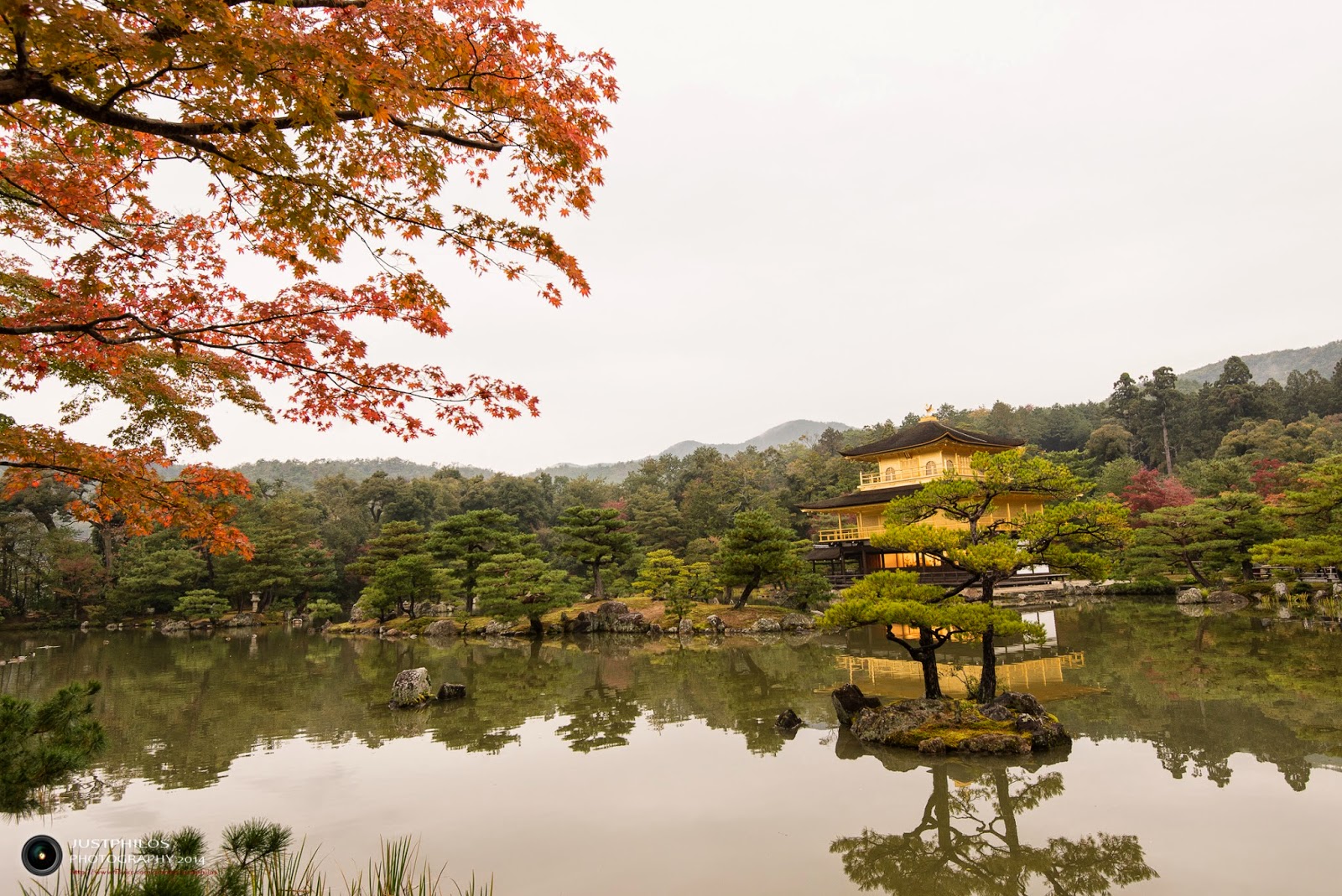金閣寺在賞楓季同樣是賞楓名所,且為世界遺產之一,在歷史上經過兩次的焚毀,現在所建的金閣寺則為重建過後的樣貌。